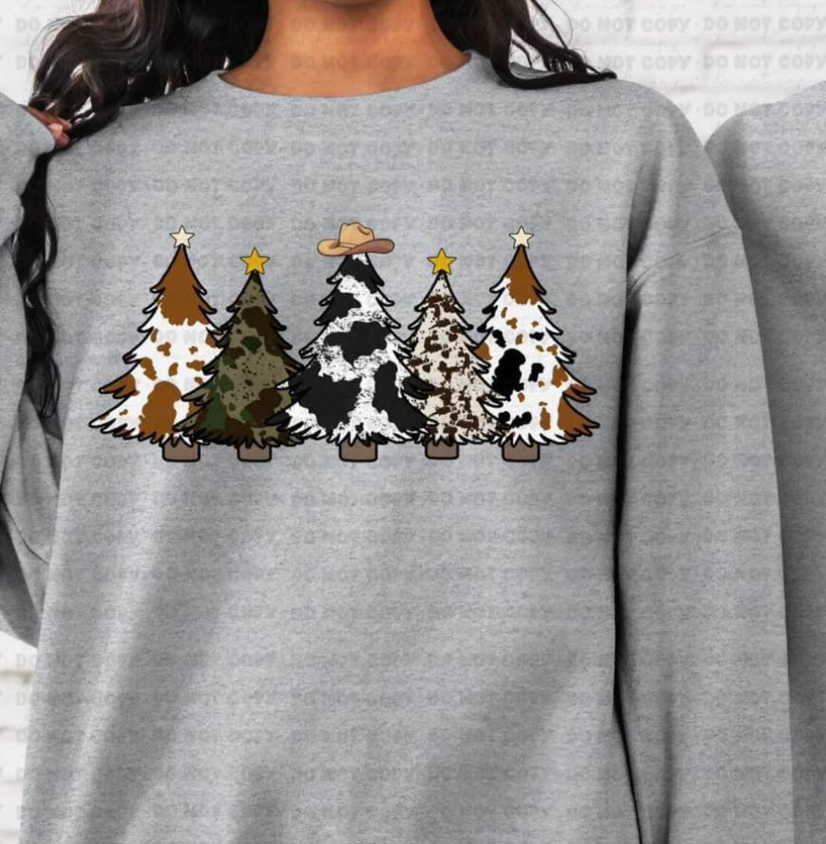 Christmas cow print Christmas tree sweat shirt